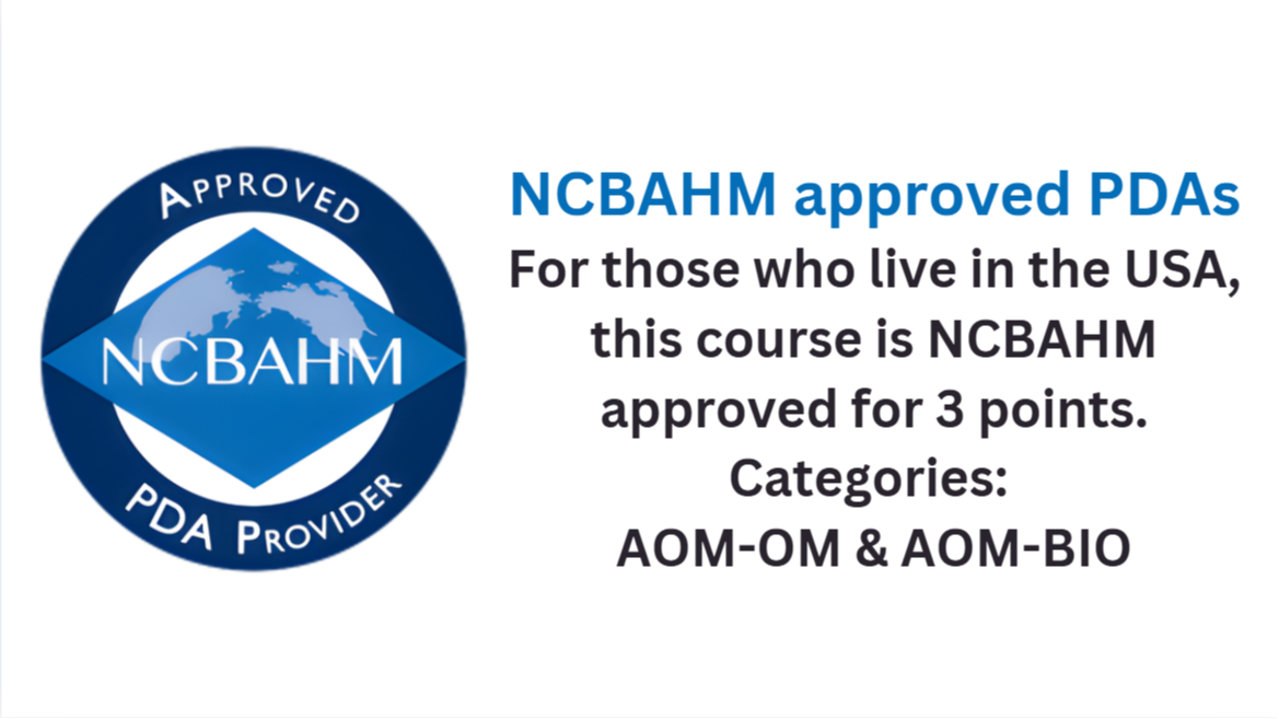 đ USA â NCBAHM: 3 PDAs â only the THEORY part of this course is approved (the NCBAHM does not approve recorded videos with needling demonstrations)